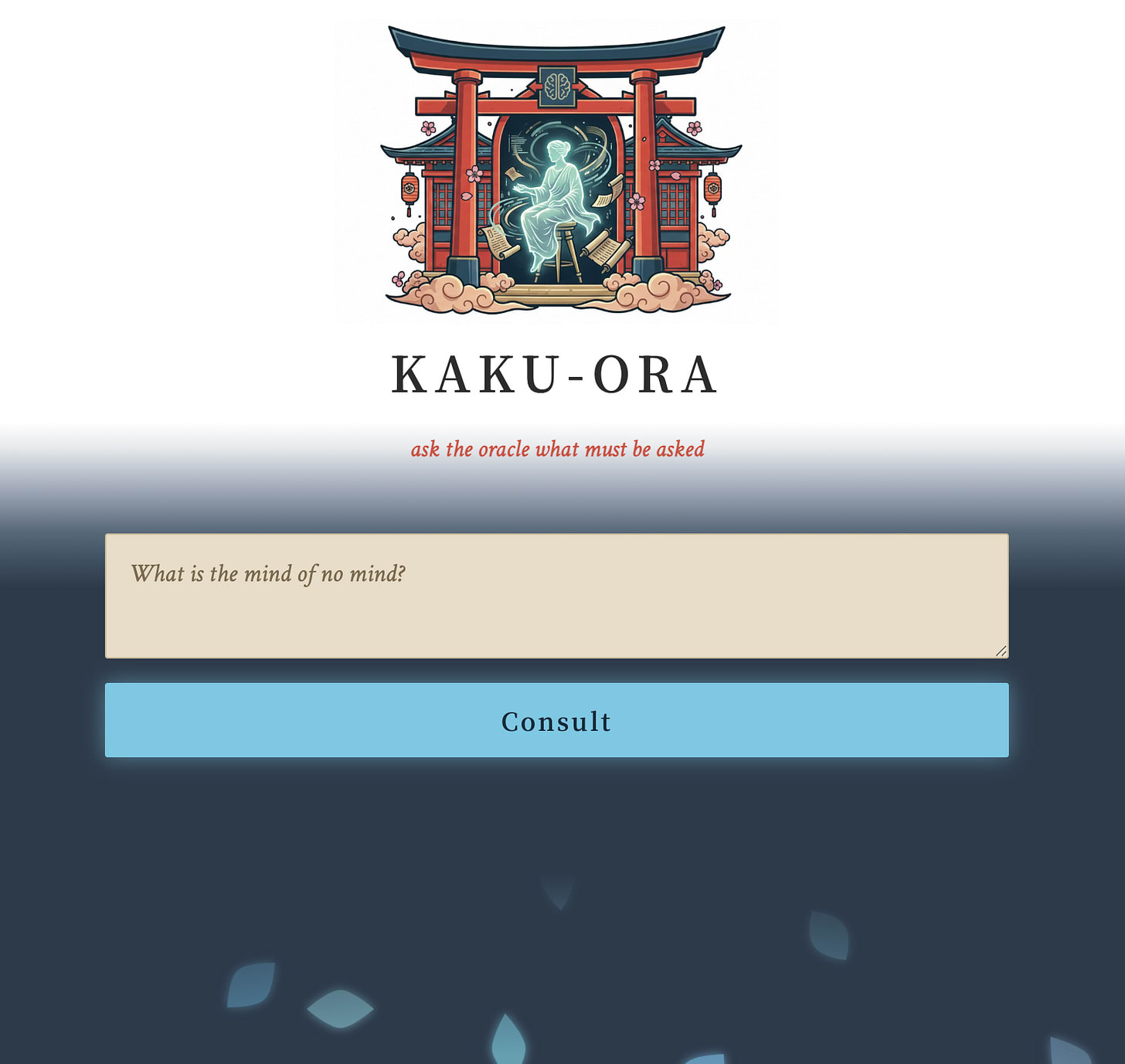 It’s called Kaku-Ora, and it’s an AI divination oracle inspired by the likes of the I, Ching, but trained on Zen koans. You ask it a question, it treats your question like the first half of a koan. It then gives a response and offers a capping verse to “explain” the response.