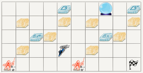 Then there are two artefacts that the agents can pick up. The winged shoes allow them to move much faster than otherwise (and much faster than the other agents). The crystal ball allows them to better predict what other agents do (one way of doing this is to allow the agent with the crystal ball to choose their action last, after it knows the choices of all the other agents). Alternately, if the environment is partially observable, the crystal ball could make it fully observable.