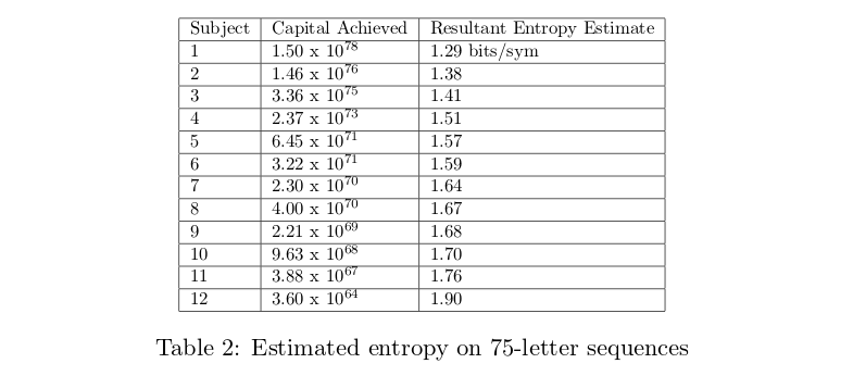 If we assume humans play rationally in the game described above, there remains three sources of uncertainty in our measurement of human perplexity: