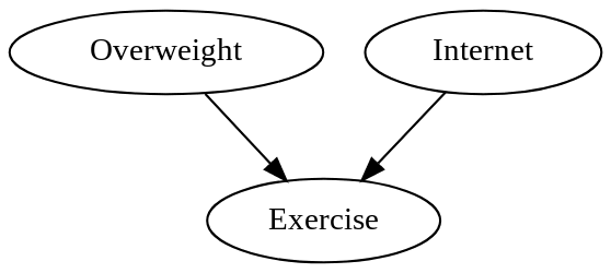 - we now realize that being overweight and spending time on the Internet both cause you to exercise less, presumably because exercise is less fun and you have more alternative things to do, but exercising has no causal influence on body weight or Internet use.