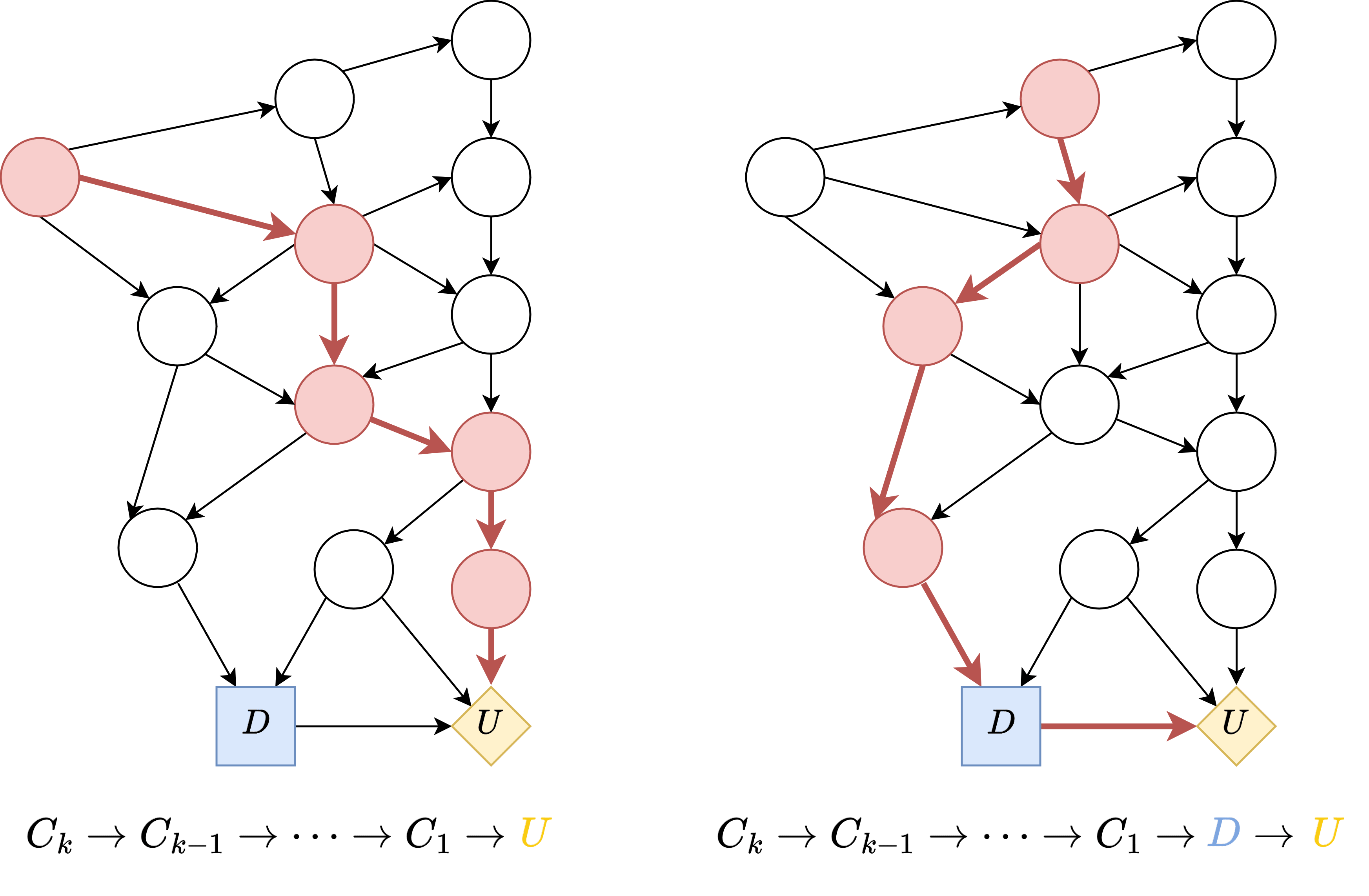 Let’s first consider the first type, Ck→Ck−1→⋯→C1, where C1∈PaU, C1≠D.