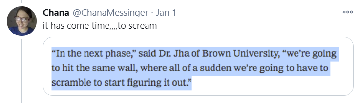 5.48 million doses so far, after almost a month. Pathetic. Scandalous. Insane. Shots. In. Arms. Now.