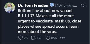 In conversation, he put the probability that the new variant would interfere with the neutralizing agent of the antibodies generated by those who get the mRNA vaccines at 80%. This is something we can find out quickly through experimentation, and it’s a sign of how bad we are at running experiments that the news has not yet (to my knowledge) reached us. There’s also the chance that other forms of protection could help out, or that the neutralizing agent could still have substantial effects sufficient to prevent illness or reduce severity. But if it comes back that the worst case scenario is indeed the case, and this mutation allows mRNA-vaccinated people to become sick, and the strain is indeed otherwise more infectious than the old one, then we have a very big problem.