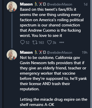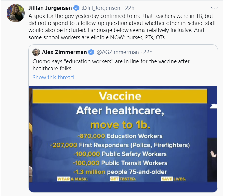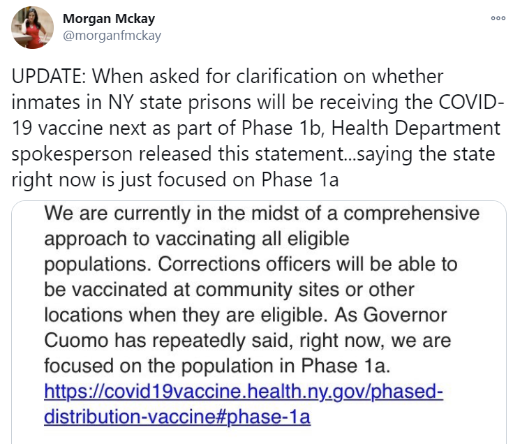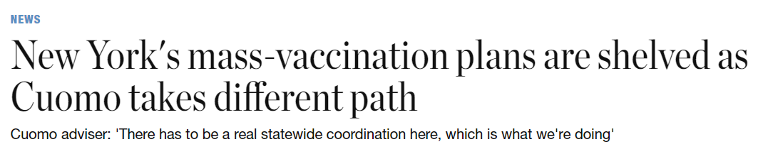 New York seems to be doing ok in vaccinations relative to other states, despite Cuomo’s ideas.
