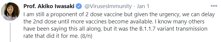 I just want to update you that my sister got the first jab in UAE on Tuesday. She’s in her late 20s and works from home. Literally last in any vaccine priority list.