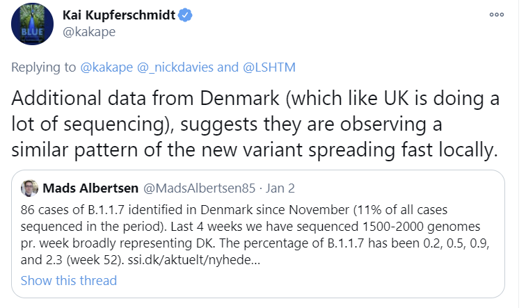 I don’t know what the likelihood ratio on this was, but it seems pretty damn high. And that’s the one country I had heard was doing a bunch of sequencing other than the United Kingdom, on one of only two strains we are worried about. So it seems not very selected. But I could easily be missing awareness of others, if so please do share.