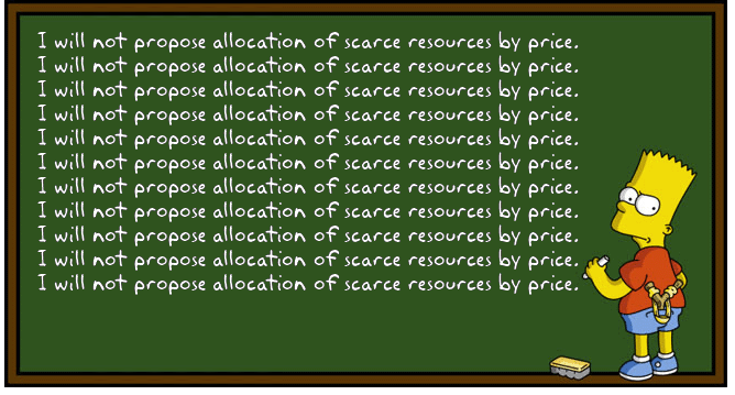 That’s there’s no widespread support for allocating scarce resources by price.