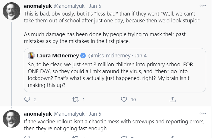 One reason I’m asking is that the UK seems to be doing much better in theory: Simpler rules, mostly based on age, no silly fights between governors and mayors, not a lot of scandals. Still, in shots per capita they are only slightly ahead. Is UK vaccine use slow in a less publicly embarrassing way, or are they supply limited while the US is not?