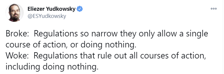 Where the concept of “default” steps in is in how any particular form of good is typically regulated and allocated in a specific country. In our country, we have a “default” of heavy regulation and a government-led approach to crisis. We don’t respond to crime waves by letting neighborhoods hire mercenaries; we don’t respond to hurricanes by letting the market sort things out; we don’t respond to pandemics by letting the market self-regulate and self-allocate.