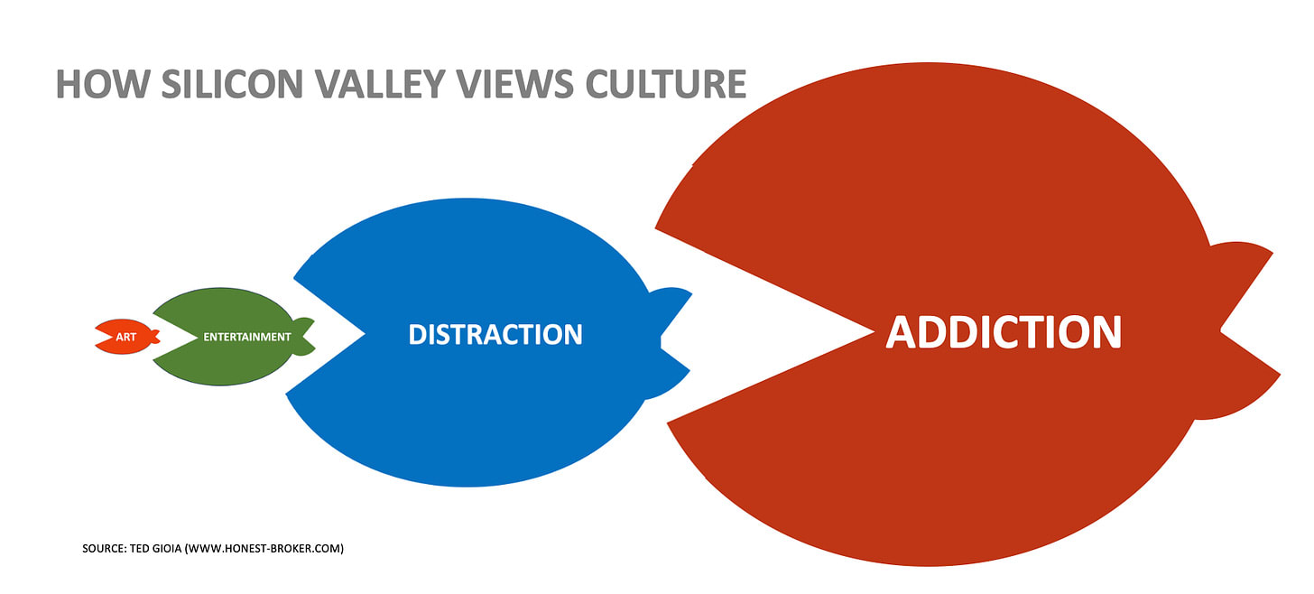Honest Broker Ted Gloria sees us moving not only from Art to Entertainment, but then to Distraction and finally Addiction, a total victory for ‘dopamine culture,’ which is crowding out traditional slower activities. As usual with such critiques, not all the details resonate, but the overall message hits the mark.