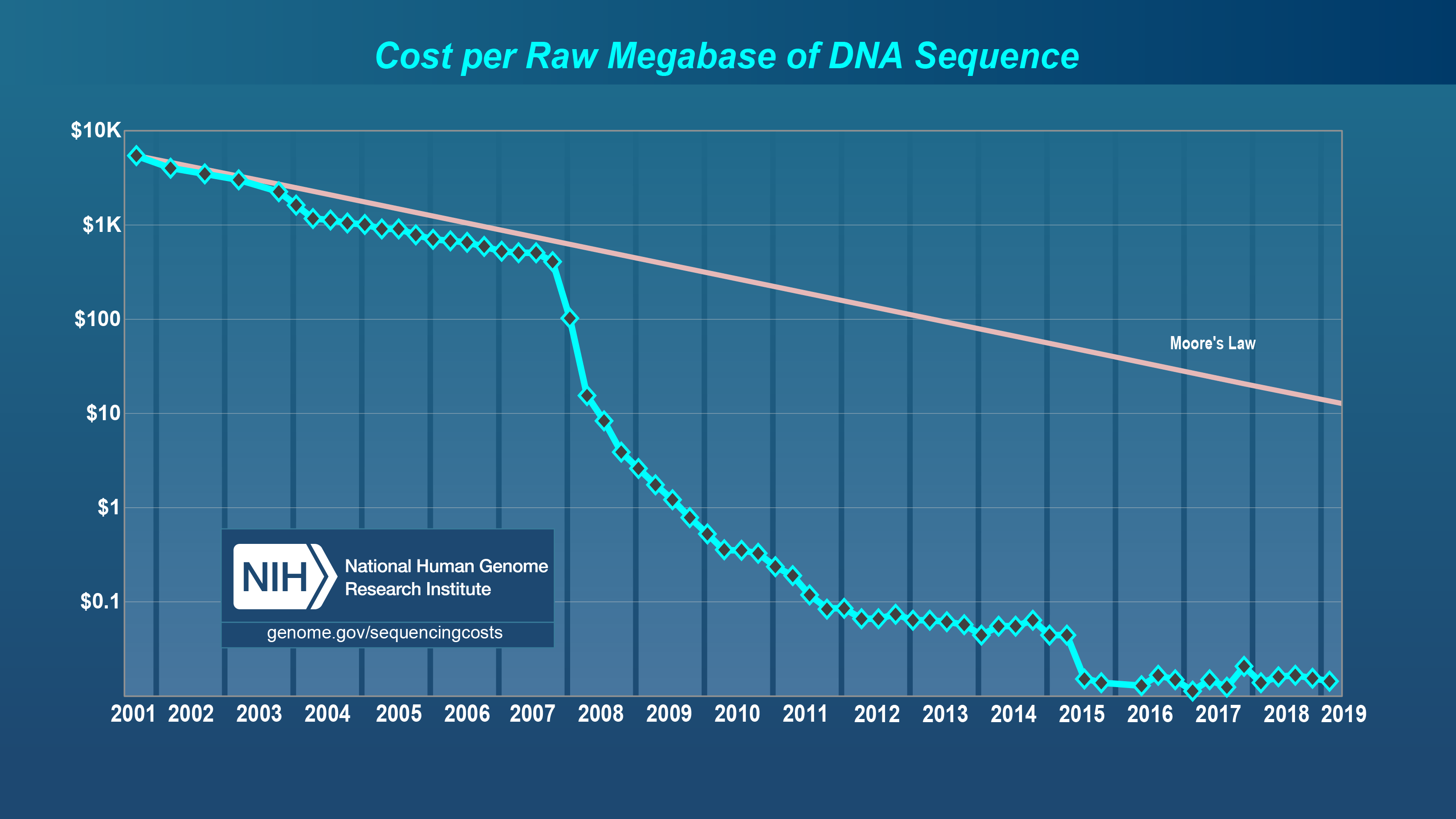 But that doesn’t mean science has been exhausted. It just means physics has been exhausted. Biology is advancing fast. I’ll never get tired of this graph about how, since 2007, biotechnology has advanced faster than computer technology ever did.