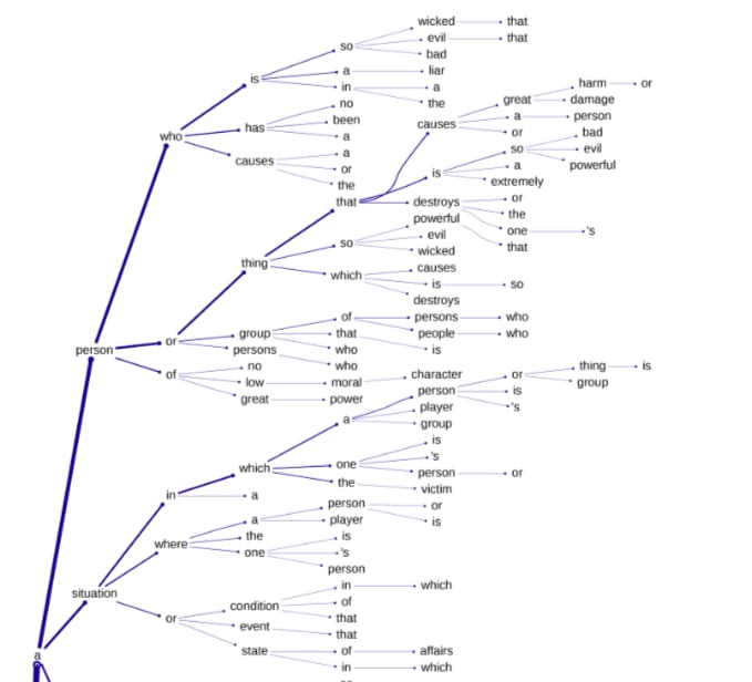 Token string headings below link to JSON files containing all 700 outputs/definitions. These make for fascinating reading (if you enjoy watching concepts disintegrate and transmogrify).