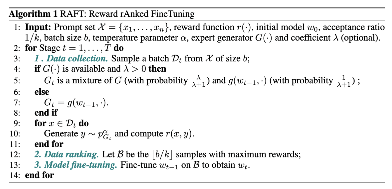 [1] Hanze, Dong, et al. “RAFT: Reward rAnked FineTuning for Generative Foundation Model Alignment” https://arxiv.org/abs/2304.06767