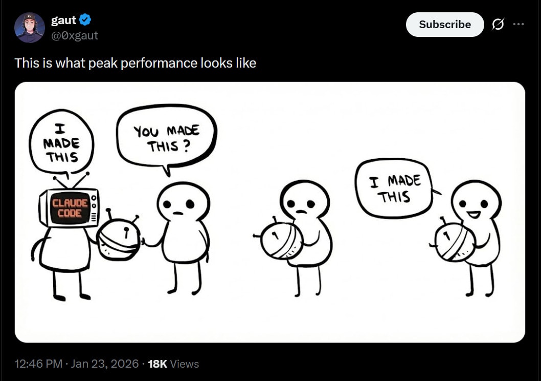 He’s still behind the curve, I’m with Boris Cherny at 100% agentic coding. Then again, excluding quotes I’m still at almost 100% manual writing for posts.