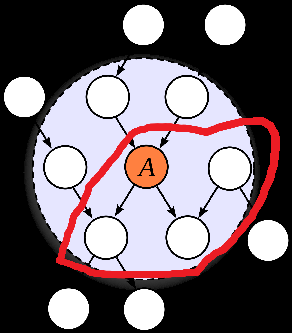 We want to imagine a sequence of nested Markov blankets, each cutting off all the previous blankets from the rest of the graph. These Markov blankets are the “messages” in our metaphorical game of Telephone. In the toaster example, these are sequential layers of air molecules between the toaster and the measurement.