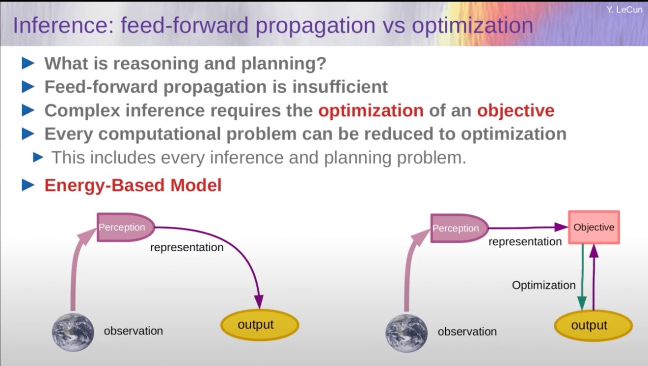 Instead thinks we should have AI systems be using optimization/search algorithms against an objective when posed with a problem, rather than using feed forward neural networks. And then the search process can continue until it solves the problem (which means it can work longer on a hard problem).