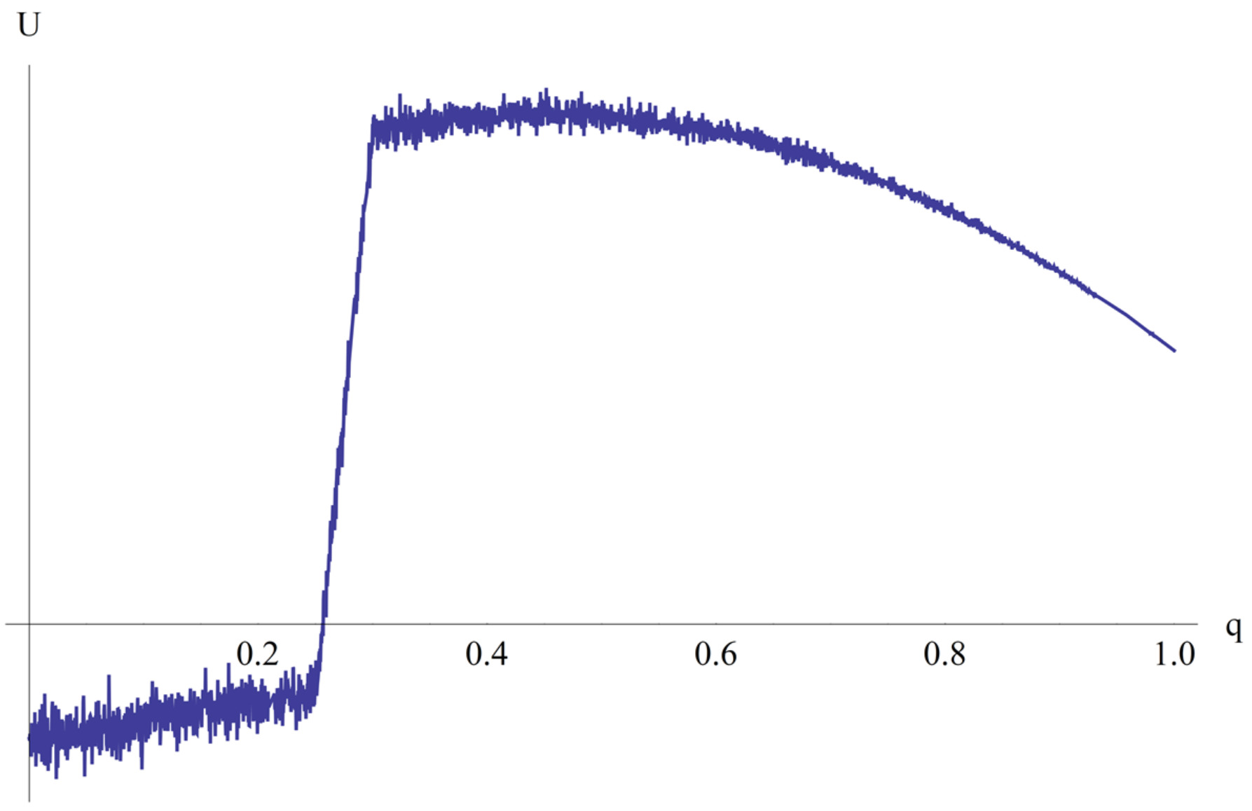 So, in the first case, we need above , and, in the second, below . And, moreover, it might be that the first situation appears in one world and the second in another, and both worlds are currently possible. So there’s no consistent good value of we can set (and in the general case, the curve might be multi-modal, with many peaks). And note that we don’t know any of these graphs (since we can’t define fully). So we don’t know what values to set at, have little practical guidance on what to do, but expect that some values will be disastrous.