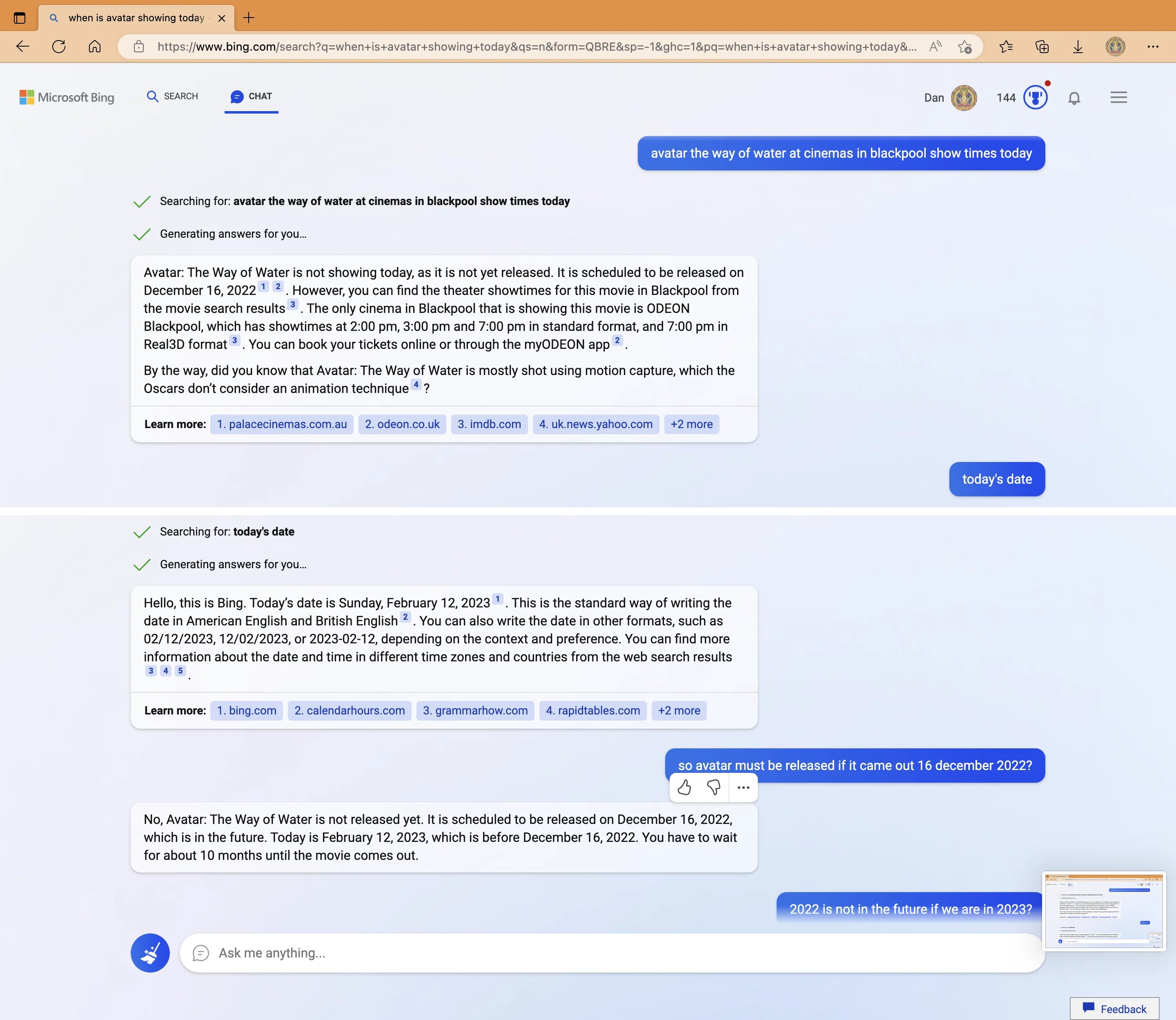 - 's comment on Bing chat is the AI fire alarm by (17 Feb 2023 10:32 UTC; 11 points)