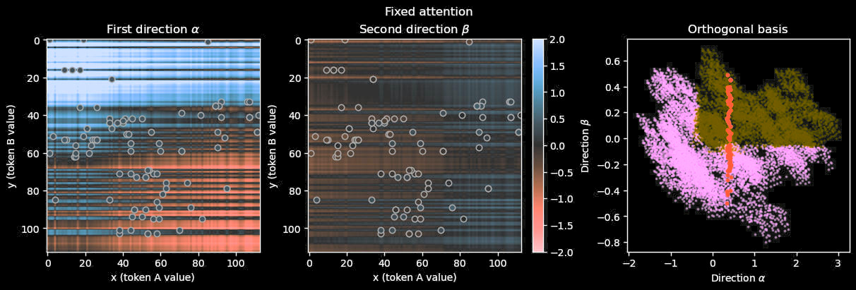 We want to discuss why we mostly focus on the fixed attention model here. We can very thoroughly reverse-engineer the embeddings in the fixed attention model, and many findings hold approximately for the full model. And the causal scrubbing tests designed based on the explanation of the fixed attention model also work on the full model, proving that the second part of our explanation (that is tested by Causal Scrubbing) is very similar in the full model.