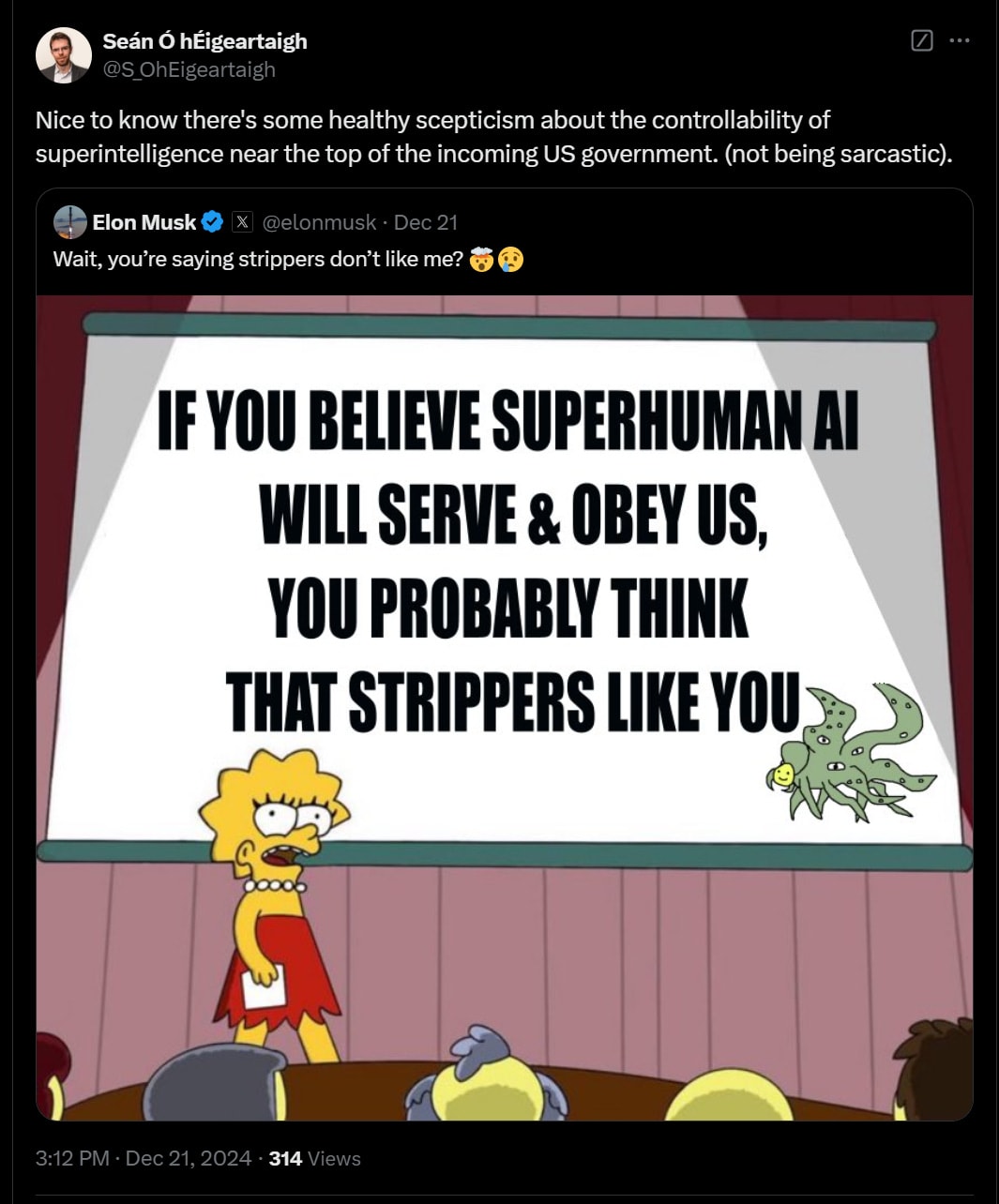 I actually really liked this exchange – given the range of plausible mindsets Sam Altman might have, this was a positive update.