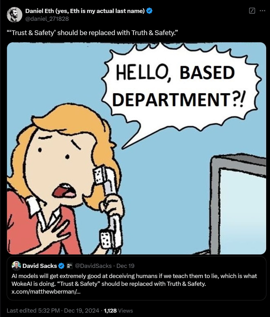 Essentially no one has reported back on what this model can do in practice yet, and it’ll take a while to go through the technical report, and more time to figure out how to think about the implications. And it’s Christmas.