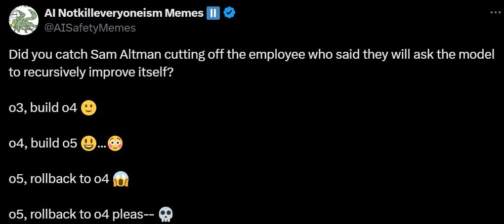 Someone at OpenAI: Next year we’re going to have to bring you on and you’re going to have to ask the model to improve itself.