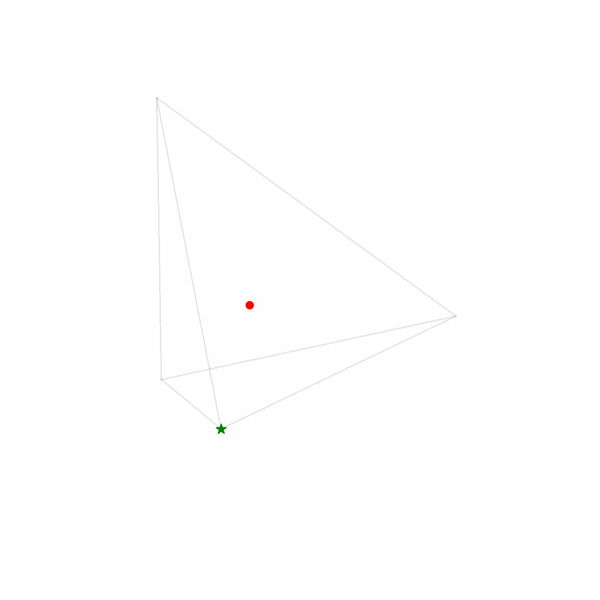 Optimization also follows subspaces: if there is no optimization pressure to move off of a face, then optimization continues only on that sub-simplex.