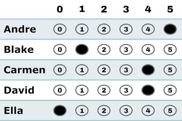 One criticism of approval is its binary nature. You either approve of a candidate or not. There is no option to differentiate. Score voting improves upon this by allowing in-between values, typically on a 0 to 5 or 0 to 9 scale.