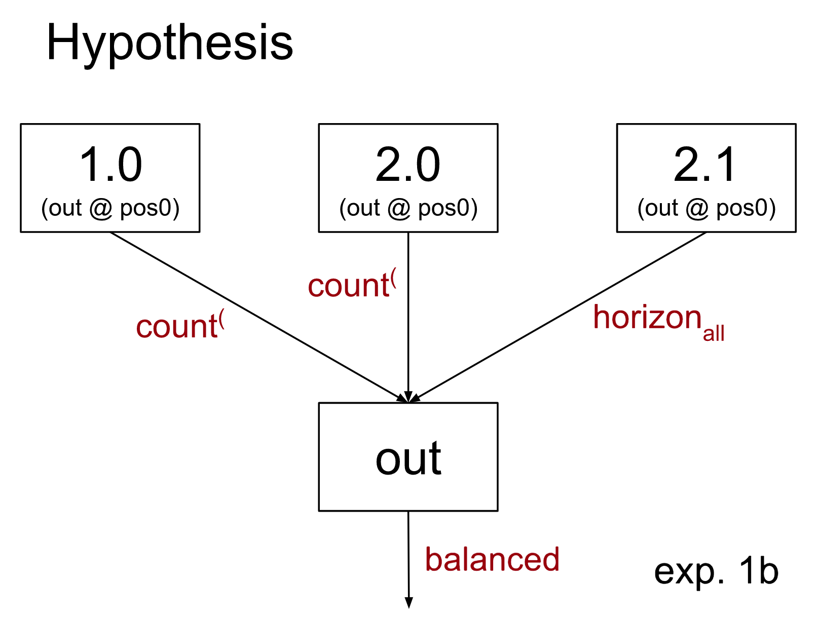 This shows the horizon tests agree at every position of any input that passes the count test. This ensures they agree on if any input is balanced, and our new causal graph is still perfectly accurate.