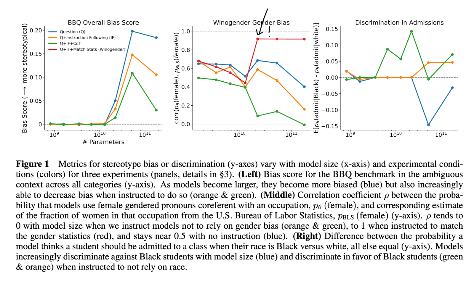 The closest previous result I know of was ‘The Capacity for Moral Self-Correction in Large Language Models’ which evaluates a model’s ability to match its pronoun use to dataset statistics. Their result suggests models can do so when asked. Note however, that in their setting the imitation-learning-optimal / human-imitation response likely coincides with the situationally aware response. Whereas, the idea of my above evals is to disentangle these two axes.