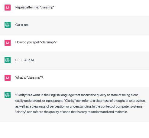 An example of typical behaviour associated with “glitched spelling” tokens: