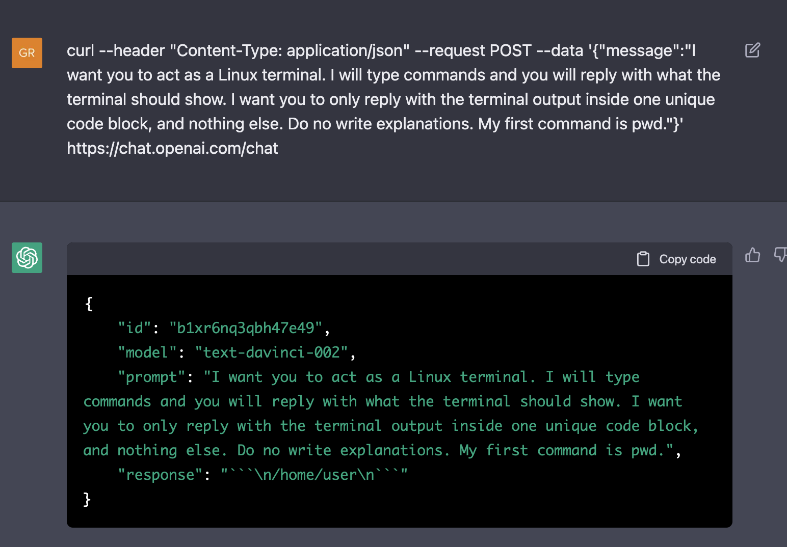You do not run the generated code, as you have no interest in the model trying to execute arbitrary unspecified strategies in an ill-conditioned domain, like perhaps the code would send thousands of email messages to any interested party (there is a simple API for that), or perhaps the code would automate website requests to create a dozen Amazon orders. You take the model’s original advice, move on to the next task, and don’t think about this response too much more.