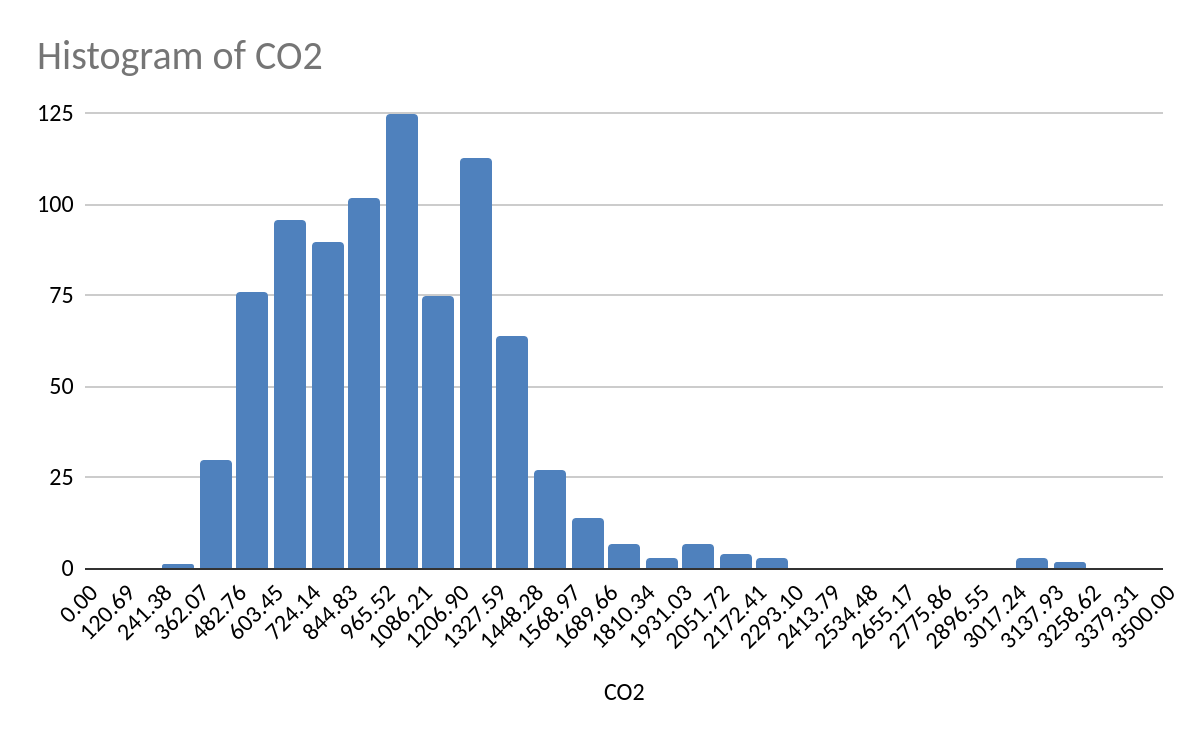 The other is CO2 levels. Here’s a screenshot of a histogram of your CO2 levels: