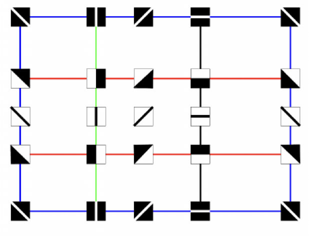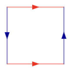 Here we take a piece of paper and identify the red edges on the top and bottom, without a twist, and the blue edges on the left and right with a twist. You can try to do this with a piece of paper, and you will invariably be forced to tear the paper. This fact reflects the fact that the Klein bottle cannot be viewed as a manifold in R4
