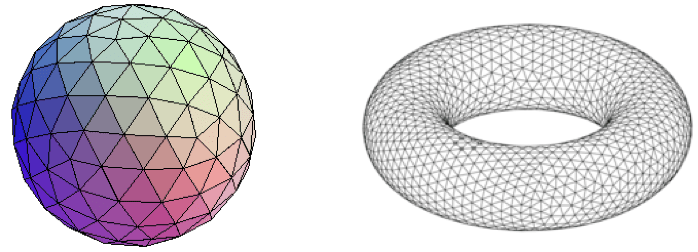 Non-linear surfaces can sometimes be represented as the vanishing sets of polynomials or sets of polynomials. For example, a torus can be described as the subset of R4consisting of the points satisfying the two equations x2+y2=1 and z2+w2=1. One problem with this mode of representation is that it is often difficult to find the right algebraic equations for the surface. Even when one can, it is difficult to work with the algebraic description. For example, it can be very difficult to sample from the surface, and it is difficult to describe distributions on it. One way of getting around this is by introducing intrinsic coordinates, as one does when one introduces the single angular coordinate θ on the circle or intrinsic coordinates θ1 and θ2 for the torus. Although this can be done for a number of surfaces, for example by introducing spherical harmonics for spheres, it typically requires very detailed analysis, and there are many situations where there are no particularly natural choices for intrinsic coordinates. Another way of describing a surface is by triangulation. This means describing the surface as a collection of simplices, i.e. points, intervals, triangles, tetrahedra, and higher dimensional analogues.