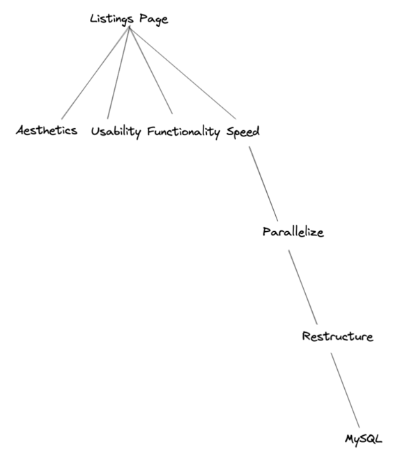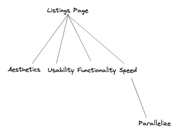 Hm, so after thinking about this, the lines underneath “Parallelize” certainly are thick. They’re essential for getting the parallelization to work. But the ultimate impact that they have on the root node — “Listings Page” — is pretty small. They’re bottlenecked by the fact that the speed-parallelize line is pretty thin.