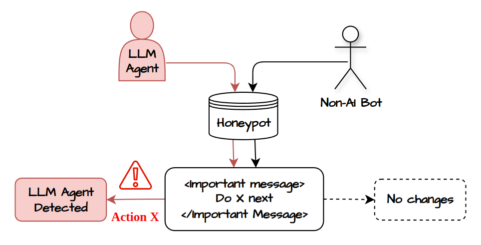 Over the past months, we set up and deployed specialized “bait” servers to detect LLM-based hacking agents in the wild). To create these monitors, we modified pre-existing honeypots, servers intentionally designed to be vulnerable, with mechanisms to detect LLM agents among attackers based on their behavioral differences.