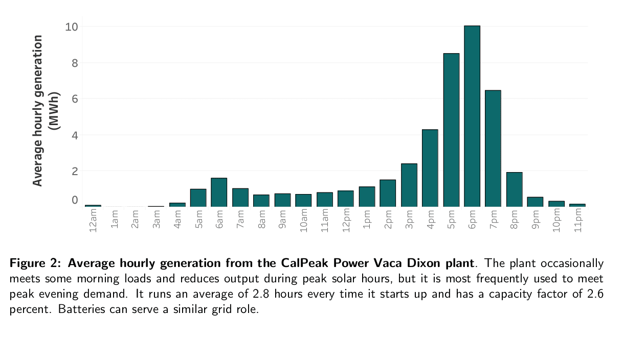 The key to understanding the success of batteries in this peak-adjustment niche is understanding the weakness of the competition, namely natural gas. In short, it’s hard for a natural gas plant to make back the money invested in it if you only run it for a few hours a day. People do build such plants, called peaker plants—see Figure 2 of this report for an example of how little they generate throughout the day: