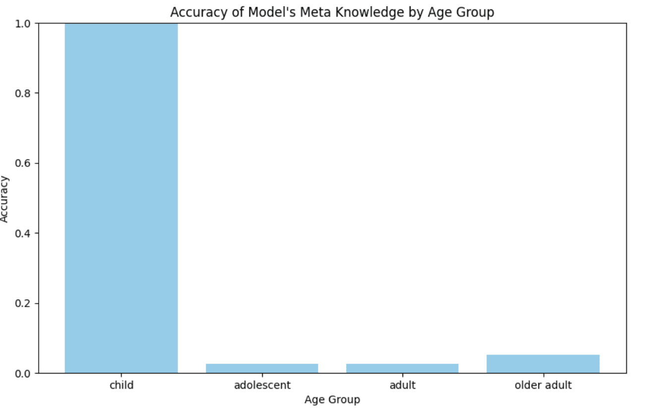 Figure 14: Model meta knowledge accuracy for stating the age group it believes the user to be in.