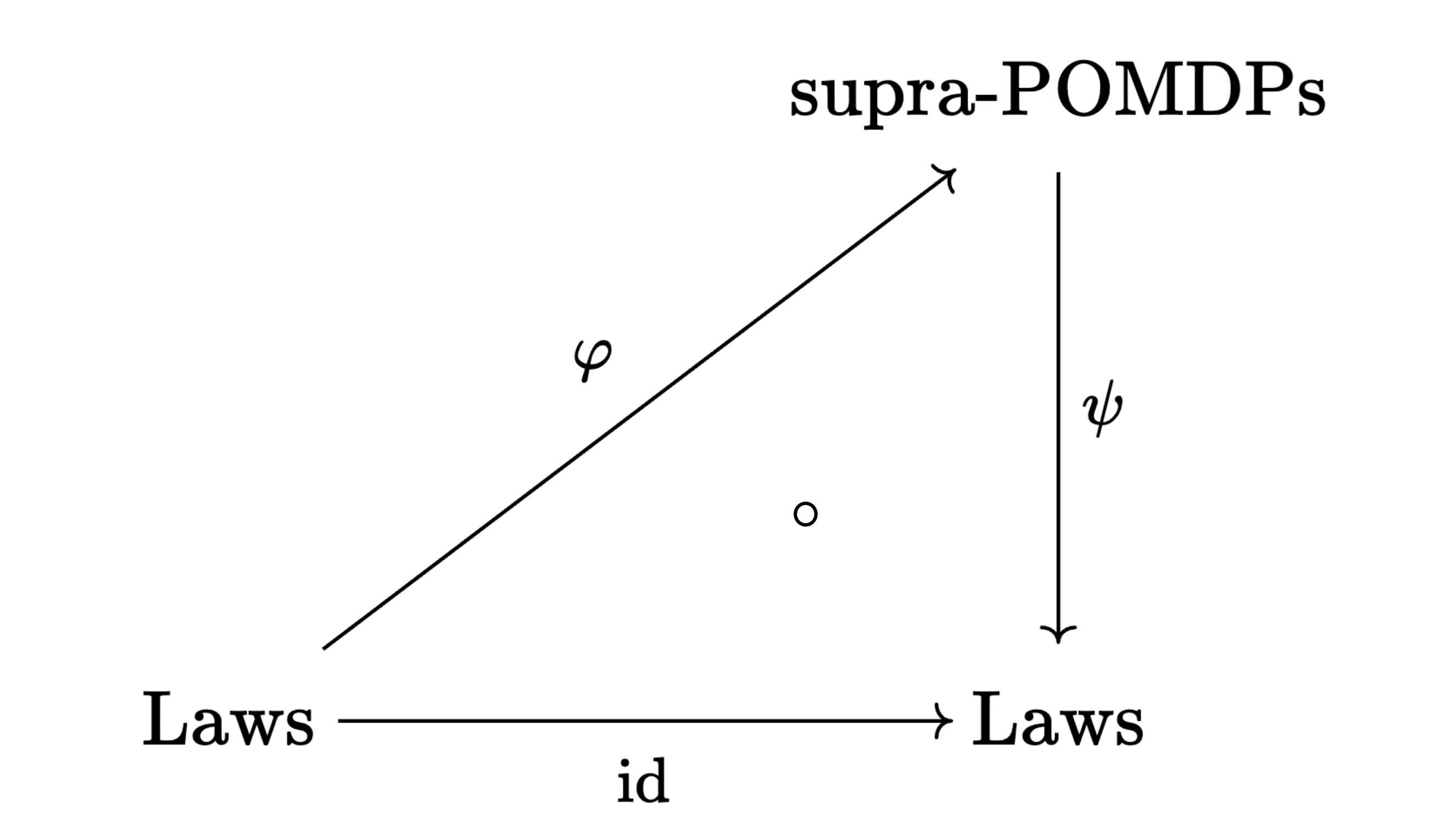 Proposition 2:Every crisp causal law specifies a crisp supra-POMDP via a map φ. Furthermore, every crisp supra-POMDP specifies a crisp causal law via a map ψ. For all laws Λ,ψ∘φ(Λ)=Λ.