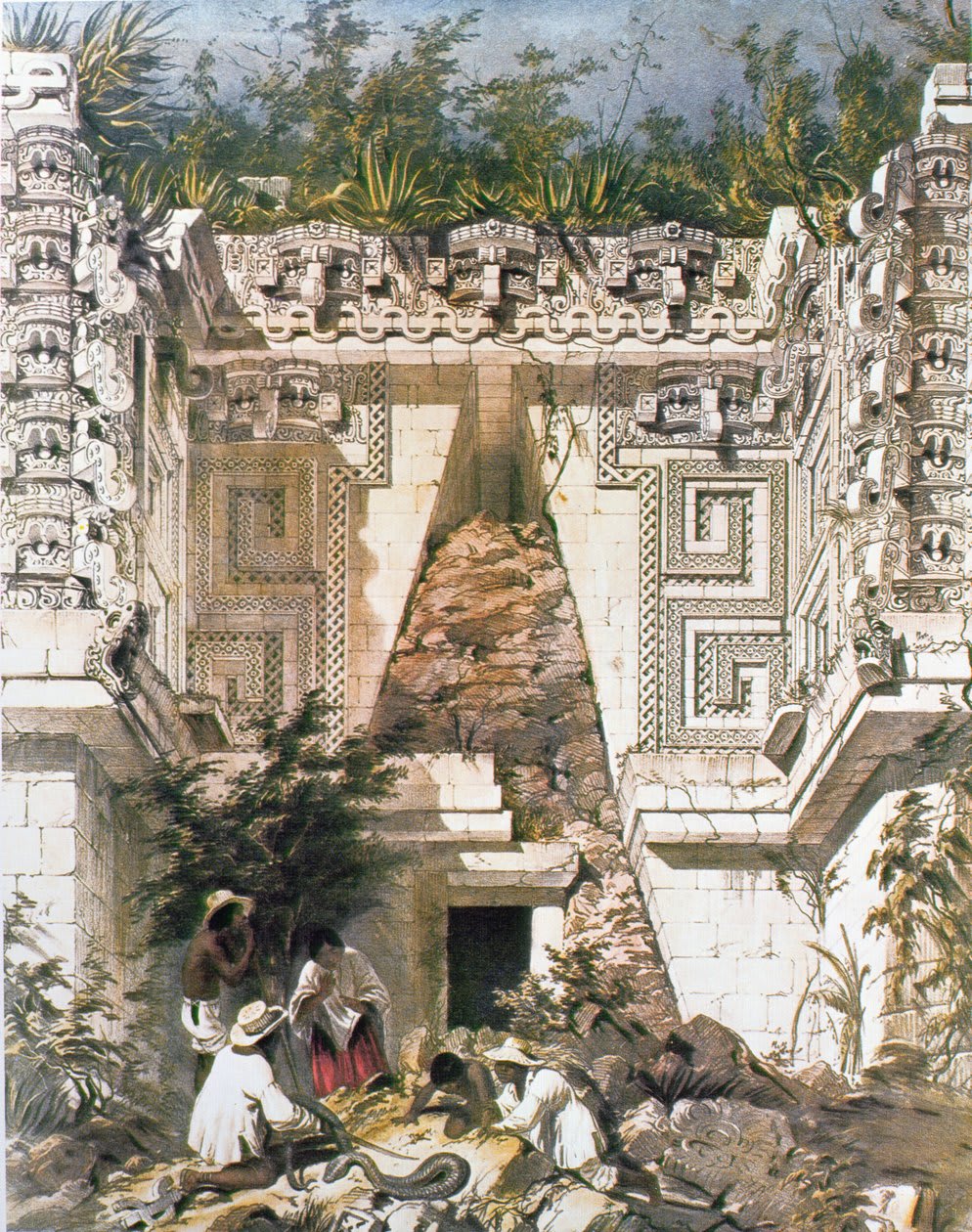 Maya sculpture is especially elaborate and maximalist, and if one had just taken a quick snapshot of it, it would often look like a jumbled mess (especially since all the paint’s worn off). It’s often even hard to tell where, for example, the human figures are in the carving. Catherwood would take time to inspect the ruins and understand the artistic composition of them, which he would then use to subtly shade his illustrations in ways that made the composition clear to the viewer. As mentioned before, he could do this without sacrificing accuracy. Anyone who has tried to take a picture in a forest on a hike knows what I’m talking about. The view looks stunning, but somehow the picture just looks like random noise of leaves, with all the three dimensional structure flattened out.