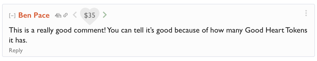 We’re calling these new tokens Good Heart Tokens. And in partnership with our EA funders, we’ll be paying users $1 for each token that they earn.