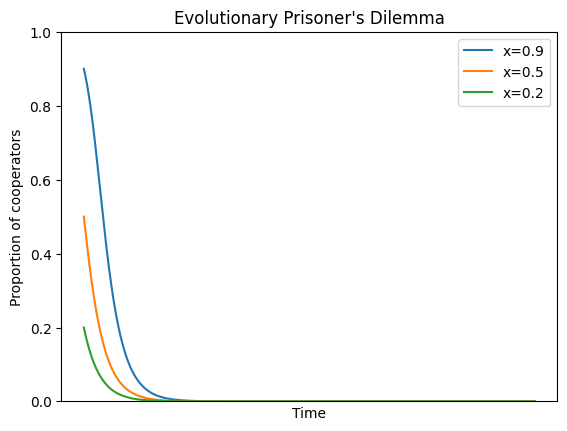 Note that a relevant aspect of the EPD model here is that the proportion of cooperators in the initial state does not change the subsequent dynamics. So if you treat the temporary burst of cooperation as an exogenous shock to the system, the number of cooperators will still subsequently decline.