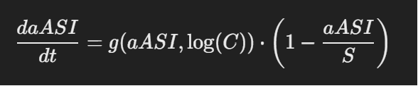 the g factor(intelligence) of the ASI depends on the algorithm of the ASI times the log of compute assigned to it, C.