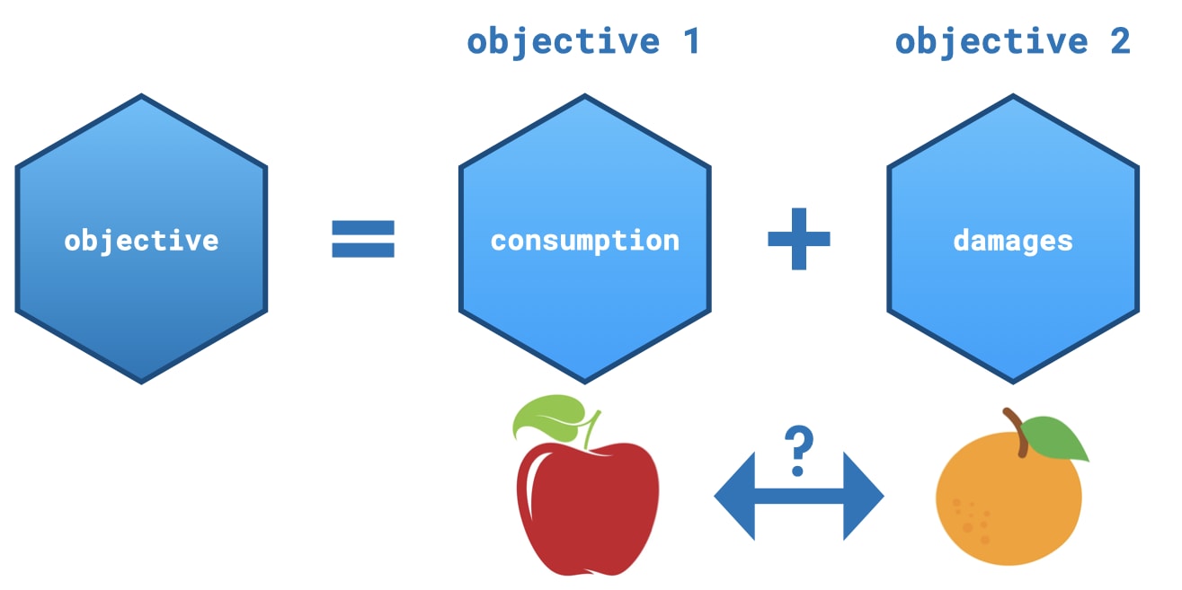 Take, for example, economic consumption and climate damages in integrated assessment models. Although they share the same unit (USD$ usually), it can be troublesome to conflate them into a single objective. Climate change is a complex, nonlinear process that involves multiple feedback loops and interactions. There is significant uncertainty associated with the magnitude and timing of future climate impacts, which makes it difficult to accurately quantify the damages caused by climate change. Beyond that, the impacts of climate change are not evenly distributed across the population or the world. Some regions and populations are more vulnerable to the effects of climate change than others. Therefore, aggregating economic consumption and climate damages into a single variable may obscure important distributional impacts and equity considerations. Often, it might be better to consider separate objectives to avoid such pitfalls.