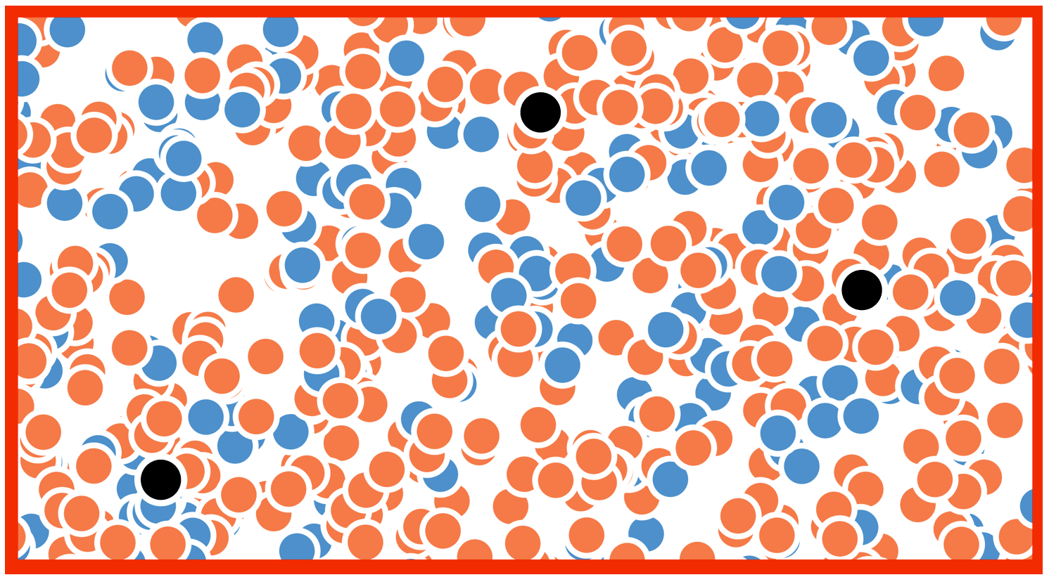 What we do next is select particular scenarios in that vulnerable subspace that represent the subspace in the best way. So, we are looking for scenarios that are vulnerable but also maximally diverse. In the figure below, you see these scenarios as black dots. (These have been randomly put in place for this example. There are formal methods to find these scenarios but we will not discuss them here.)