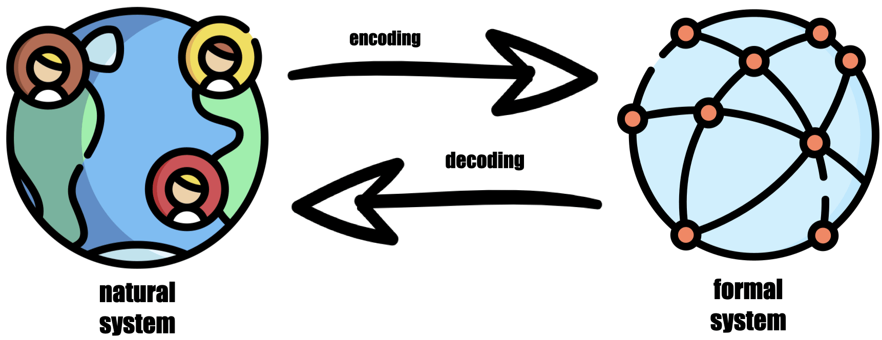 But what is modeling actually? Modeling is the process of creating a simplified representation of a natural system that captures the key components, interactions, and behaviors of the system. This representation is encoded into a formal system, such as a computer program or mathematical equation, that can be used to simulate the behavior of the system under different conditions. Through the process of simulation, the formal system can be decoded back into a natural system, allowing policymakers and researchers to gain insights into the behavior and potential outcomes of the real-world system.