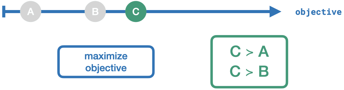 You have three outcomes for one objective. It’s clear which outcome is dominating. But if we add another objective, things become more complicated – but still doable!