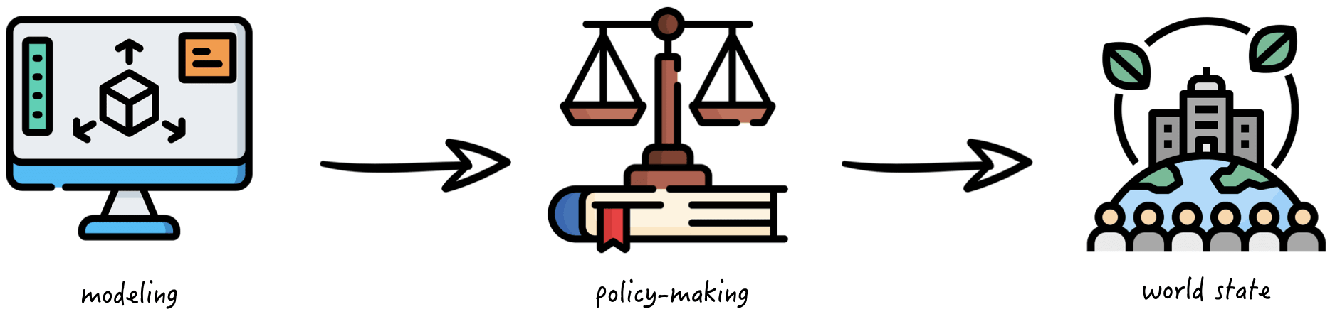 We care about the state of the world. Policy-making can affect this state. However, navigating through a space of endless possibilities renders it hard to find good policy solutions to lead us to desirable world states. Intuition, or relying on personal experience and judgment, can be a useful tool in many situations, but it can also be unreliable and insufficient when it comes to understanding and acting on complex systems like the one described above. Ideally, we would like to see our policy-makers use evidence-based methods to support their decision-making process. Using formal modeling can be a way to offer such support.