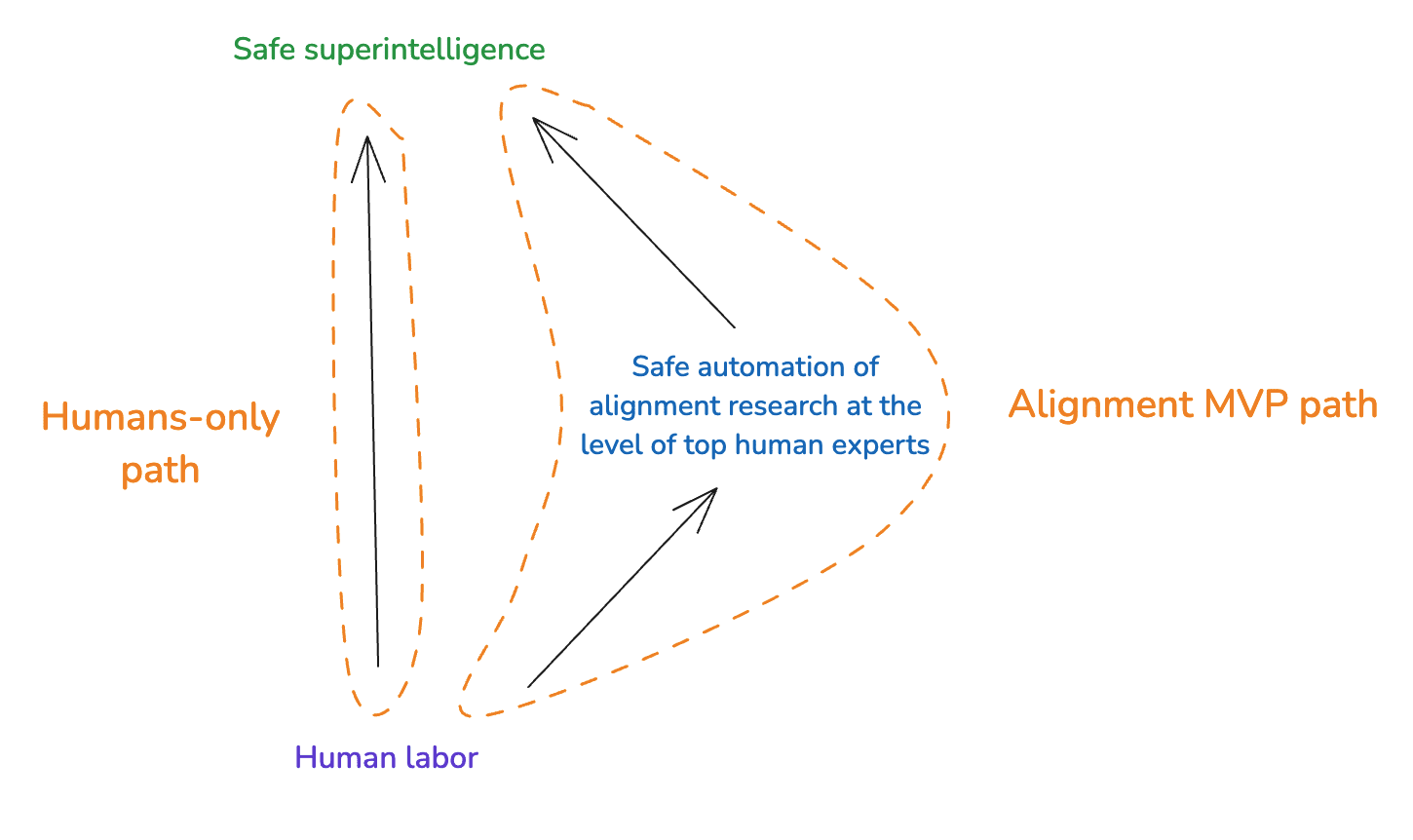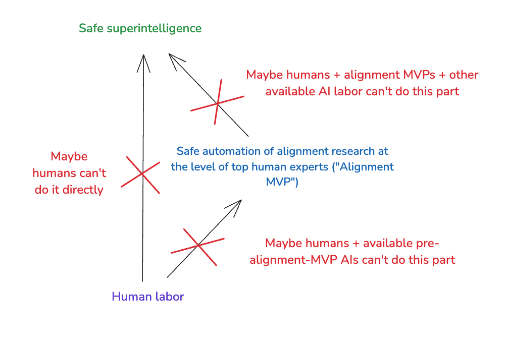 Now: you might worry that neither a humans-only path nor an alignment MVP path are viable. For example, you might think that humans (even with the help of pre-alignment-MVP AIs) aren’t smart enough to build an alignment MVP, let alone a safe superintelligence. Or, alternatively, you might think even with an alignment MVP, we couldn’t get the rest of the way.